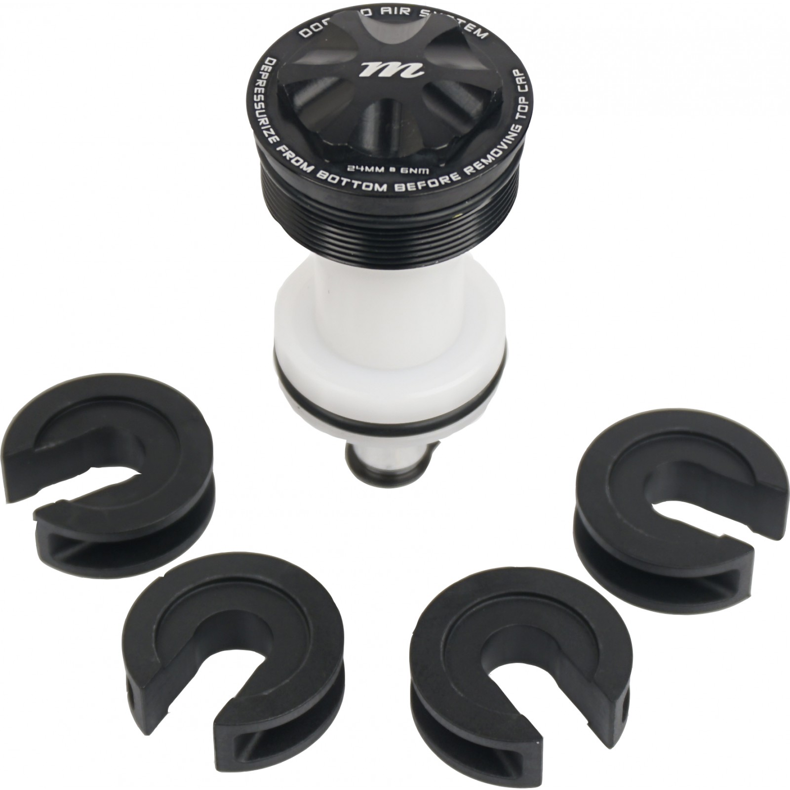 Le kit IVA (Incremental Volume Adjust) pour Manitou Circus Pro est composé d'un système de cales qui permet d'augmenter facilement la progressivité de la courbe de compression par la modification du volume d'air. L'IVA est recommandé pour les pilotes qui souhaitent plus de sensibilité en début de course OU plus de progressivité en fin de course.