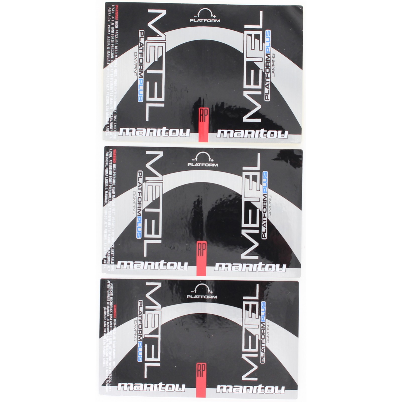Le kit stickers Manitou Metel RP est composé de 3 stickers de différentes dimensions pour s'adapter à toutes les dimensons d'amortisseur Manitou Metel RP. Longueur : 93 mm. Largeur : 1x 55 mm, 1 x 60 mm, 1 x 65 mm.