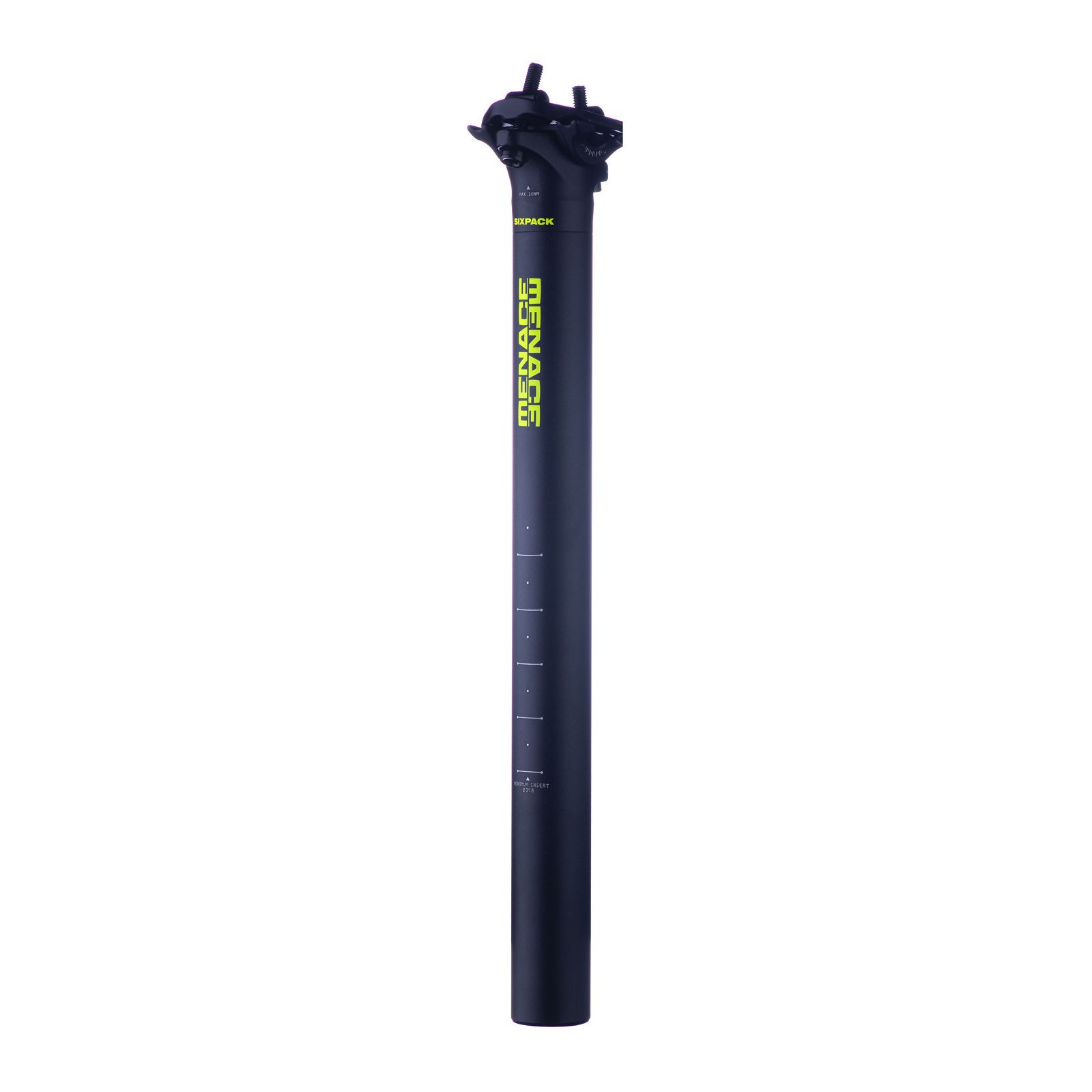 La tige de selle VTT SIXPACK Menace diamètre 27,2mm est d?une grande légèreté et d?une excellente robustesse, idéale pour toutes les disciplines de VTT. - Aluminium 6061-T6 forgé en une seule pièce - 2 vis de serrage - Gravure laser - Poids : 276 gr - Lon