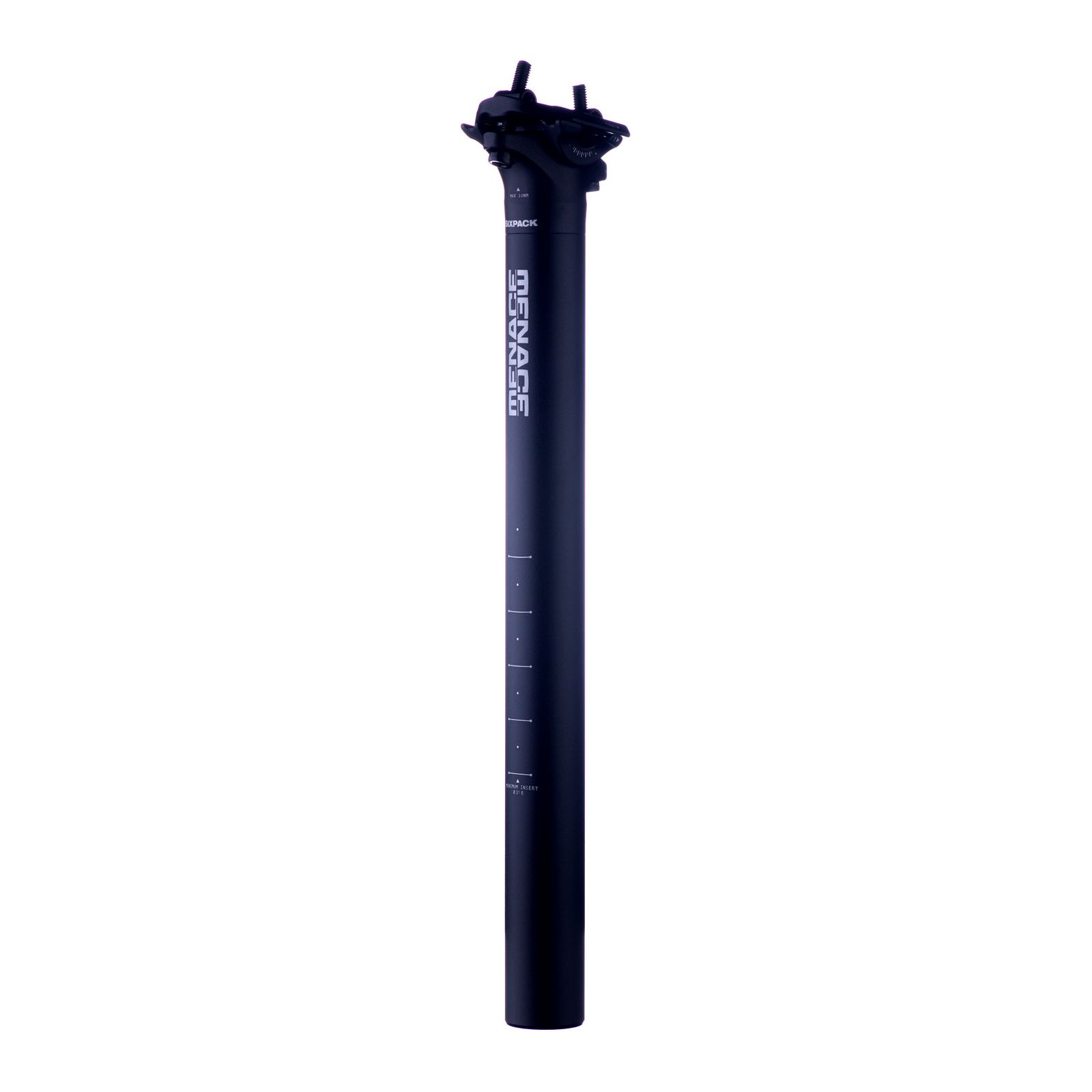 La tige de selle VTT SIXPACK Menace diamètre 31,6mm est d?une grande légèreté et d?une excellente robustesse, idéale pour toutes les disciplines de VTT. - Aluminium 6061-T6 forgé en une seule pièce - 2 vis de serrage - Gravure laser - Poids : 276 gr - Lon
